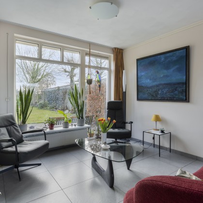 De woning combineert moderne voorzieningen, energiezuinigheid en een zeer gunstige ligging met een diepe achtertuin en de mogelijkheid om de twee garages aan te kopen.